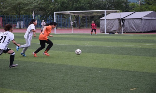队员掌控主动权。由于比赛当天有降雨,所以场地比较湿滑,球运转速度变得更快,因此双方的节奏较不易掌控。法学院女足也不甘示弱,很快展开了如潮水般的猛烈反攻。传媒女足门将张文晴眼疾手快,一次次化解门前危机。截止上半场结束,传媒女足以1:0的比分暂时领先。