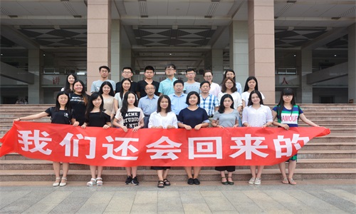 党委书记李兴保、副书记肖龙航、2013级辅导员李兴在C楼前进行了合影留念,把这份对学校、学院和老师的深深的情义永远珍藏。步履轻蹋在时间的回廊,弹响阳光的丝弦,他们都是被时间拾曳的竹笛,心中有着万千感恩的澎湃和思念,谱写别离的乐曲,挥手美丽的曲园,挥手相伴四年的麻豆视频av