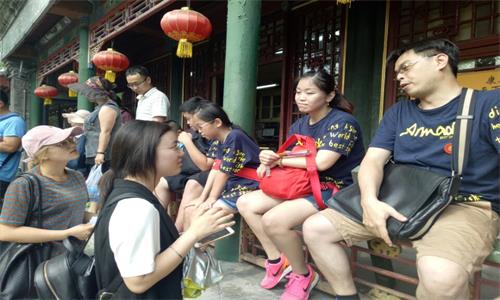上午十一点,团队成功到达西城区什刹海地区。团队首先参观了郭沫若故居,它是一座大型四合院,清乾隆年间曾是和珅的花园,到了咸丰、同治年间,是恭亲王的马号。在这里队员们感受到了故居浓重的文化风韵。受到这里老北京文化的感染,队员们热情高涨。