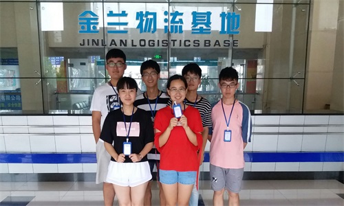 实践小分队遇到了同在金兰物流中心进行调查实践的山东理工大学社会实践调研小队。双方在物流中心大厅进行了沟通交流,共同留影纪念,并互相送上祝福,促进了两校实践小队之间的友谊。