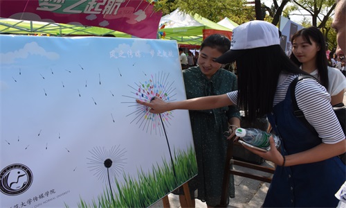 我院本次以“风之传媒,梦之起航”为主题,在报到处安放并张挂了众多彩色的风车,这些蕴含着希望与追梦精神等寓意的风车也成为迎新会场一道靓丽的风景线。报到处的正前方摆放了一块给新生按手印的画板,手印最终可以合为蒲公英的形状,照应着本次“风”与“梦”的主题。迎宾组身穿院服在报到处引领着新生的报到,展示传媒的风采。而今年首次以扫码的方式来登记报到,工作效率有了极大的提高。报到处专门设立了家长休息区,提供了免费的矿泉水,来供家长休息。接车组也在大巴车门口高举麻豆视频av