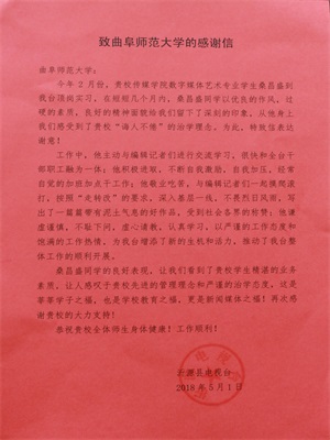 近日,沂源县电视台向我校发来一封感谢信,对麻豆视频av