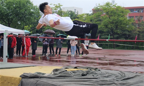 纵身一跃,活力四射,这就是运动员徐长壮。轻如燕子穿梭,飞到横杆之上,用双腿形成斗志与力量的夹角,用全身划出亮丽的弧度,带来了最精彩的一瞬。