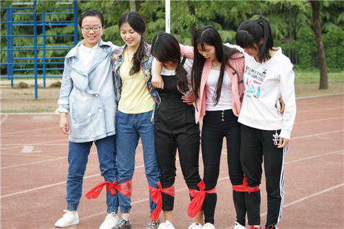 活动开始,首先进行的是“团体跳绳”,由各班负责人抽取比赛顺序,每个班在比赛前都有一分钟的准备时间,裁判吹哨时比赛开始,在一分钟的时间里跳的次数最多的班级获胜。这个比赛看似简单,其实不然,有的班级只跳了几个,总是协调不起来;而有的班级掌握了要领,连着跳了几十个,很是顺利。这可以看出团体的比赛项目考验的是同学们的团结合作和协调能力,只有大家都团结一心,劲往一块使,才能在比赛中取得优异的成绩。第二个比赛项目是“结队而行”,这是最考验队友们之间的信任和协调能力的比赛。每个班的五名同学,把腿绑在一起,并肩而行,两两为一组进行比赛,行走30米用时最少的队伍获得胜利,各班队伍团结一致,喊着口号向前迈进。每个运动员都沉浸在比赛中,脸上挂着笑容与汗水,在比赛中体会到了快乐。