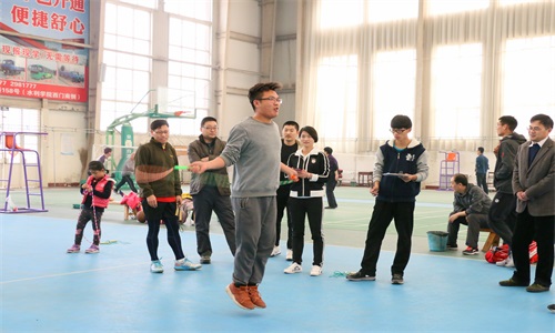 随后,在跳大绳活动中,老师男女混合分成三组。经过试跳后,老师们抓紧研究战术并调整,比赛过程中大家都拼尽全力向上跳起,为集体荣誉而战。最后,参赛老师及亲属合影留念。李兴保对本次活动进行总结,对老师们努力拼搏的精神和活动的成功举办给予肯定。本次比赛设有各单项1、2、3等奖,负责老师宣读获奖教师名单及名次,体育部为老师颁发精美奖品。
