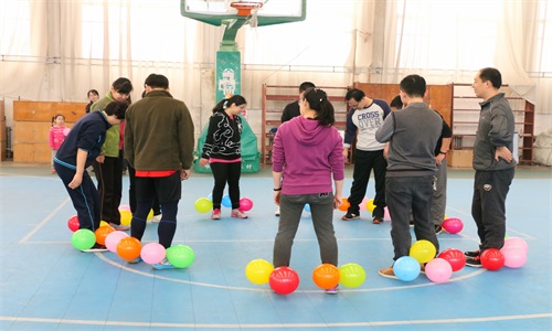 接着,踢毽子和跳绳比赛同时进行,各参赛老师都有专门的记分人员负责记分。老师们灵活地带动毽子和跳绳飞舞,努力提高连续性,最终女子组张海燕、邱春燕荣获踢毽子并列第一名。在接下来的踩气球活动中,老师们需要在保证自己腿部的气球不被踩破且不出界的前提下,尽可能踩破其他人腿部的气球,经过几轮的连续比拼,赵可云老师获得了最后的胜利。
