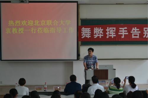 随后,李育芳向同学们详细介绍了北京联合大学的办学和招生情况,并结合PPT,重点解释了学校机构设置、硕士点分布情况、初试内容、奖励政策等同学们关心的问题,着重说明了关于教育信息技术专业的考研和教育教学的内容,使同学们清晰的了解了与自己所学专业相关的招生情况。
