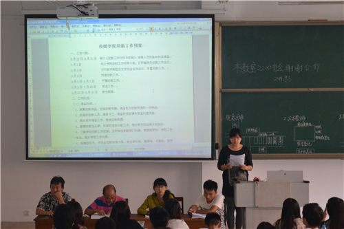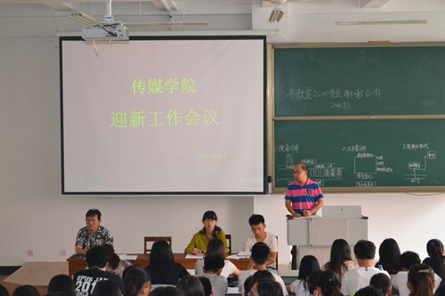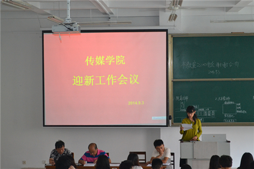 2014年迎新工作会议在JA101召开。学院党总支副书记肖龙航、团总支书记刘蓉、政治辅导员李兴、助理辅导员师衍辉出席了会议。学院第18届团总支学生会主席团成员、19届团总支学生会全体成员、2011—2013级各班长团支书参加了此次会议。