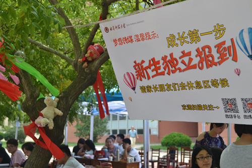 首先映入新生眼帘的是树枝上满挂的彩带,以及立在树枝上的毛绒玩具,这些玩偶全部是2013级女生贡献出来的,营造学院温暖贴心的氛围。硕大的标语“我们等你很久啦”消除了14级新生对于传媒这个大家庭的陌生感和紧张感。“新生独立报到”的温馨提示,请新生家长去休息区等候,培养学生独立自主的意识;树立在报到前台的导航图示牌,呈现出我院一条龙报到的形式,引领新生报到流程一目了然;前台接待的同学身着正装,耐心解答新生的疑问,大本营内工作人员都身着我学院特制的T恤,上面印有“梦想传媒”的泼墨字样,旨在与全国上下大议的中国梦背景下打造具有梦想的麻豆视频av