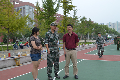 军训工作已渐进尾声,期间,日照校区学生工作办公室主任、机关党总支书记、军训团政委孔令军,学生处副处长、学生工作办公室副主任徐正伟等校领导老师亲临军训现场视察,询问军训工作进展。学院党总支副书记肖龙航、团总支书记刘蓉也来到军训场地,同教官和新生交流。