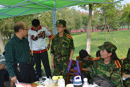 领导们向教官询问军训情况,教官说:“在紧张的训练同时军训休息期间也会有军歌合唱、个人表演等,能够让新生们做到劳逸结合,请领导们放心。”领导们充分肯定了我院军训取得的成果,并表示希望新生们发扬军训精神、彰显军训作风,也希望同学们将这样的作风带到今后的学习中去,取得骄人的成绩。