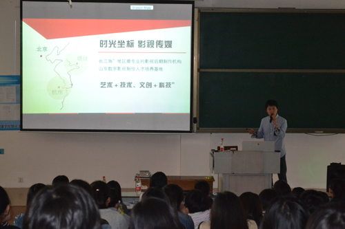 为进一步提高我院学生数字媒体技术、影视动画制作的水平,使同学们对自己的专业有一个更准确的认识,我院黄海影视剧社于10月25日下午2:00在JA101举办了关于“数字影视制作与前景展望”的专题讲座。这次讲座特意请来了烟台时光坐标影视传媒的制作总监于星海为大家主讲,我院相关专业的同学聆听了本次讲座。