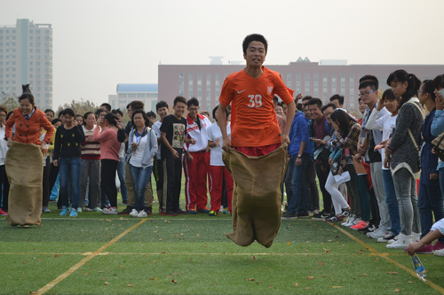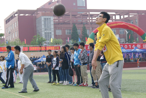 此次趣味运动会是一项开放的、全面的、趣味的,融竞技为一体的综合性赛会。其增设了协力竞走、袋鼠跳等团体项目,激发全员参与的热情;引入了心心相印、信任人椅等趣味项目,让学生以游戏的心态进行体育锻炼。设有合力吹气球、顶球竞走、海底捞月、自行车慢骑、心心相印、盲人方阵等十二个趣味比赛项目。