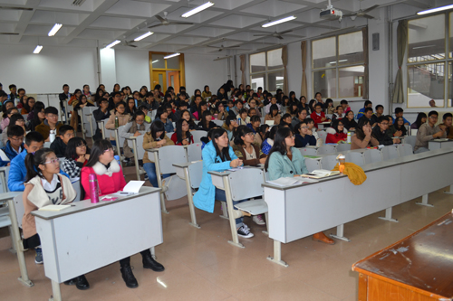 随后,陈庆国围绕“立德成才,全面发展,在奉献中砥砺成长”开始了本次的培训。陈庆国说,人生需要打拼,没有努力和付出,换不来精彩。他建议同学们应首先确立大学四年的目标,及早从刚进入大学的迷茫中走出来,努力提升自身综合素质 。其次,陈庆国对学生干部的工作职责以及工作方法作出了明确要求。他指出,学生干部是师生联系的桥梁、学生工作的助手和未来祖国优秀的接班人,学生干部应以班级为基础、以学习为核心、以就业成长为目标。最后,陈庆国以“成功”为出发点,针对学生干部素质要求作了具体的分析,其中提到了包括重品质、有理想、会沟通、适应环境等在内的10个方面。讲座期间,陈庆国曾就社会主义核心价值观与学生展开互动,现场气氛热烈而活跃。