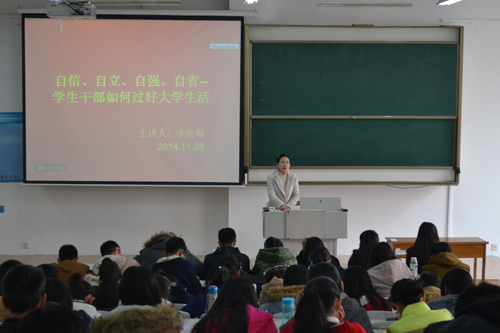 学生干部培训班第二讲――学生干部如何过好大学生活于JA101顺利开讲。此次课程主讲老师为校区管理办公室老师李艳梅。2014级全体学生干部以及麻豆视频av
