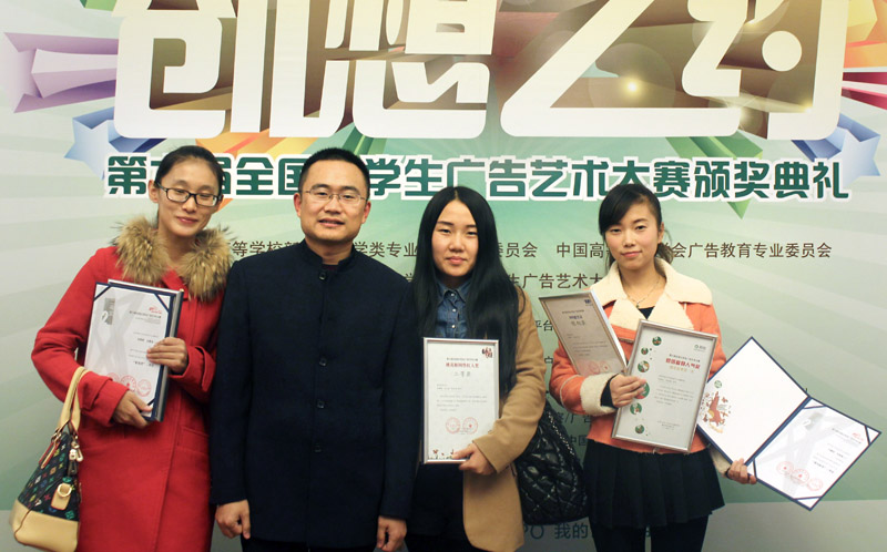 大广赛指导教师代表孔德刚副教授和四位获奖学生代表赴京领奖。我院师生在本届大广赛颁奖典礼上收获颇丰,由孔德刚、刘成新、张维刚、胡凡刚、董从斌等5位老师指导的学生,共获得国家级二等奖2项,国家级优秀奖8项,优秀工作者奖1项,优秀指导教师奖2项,网络人气奖一等奖2项,企业奖二等奖2项。本届大广赛的命题企业为鼓励同学们的创作,还为获奖学生提供了丰富的奖品和奖金,我院3名学生共获得1.3万元奖金及多件奖品。