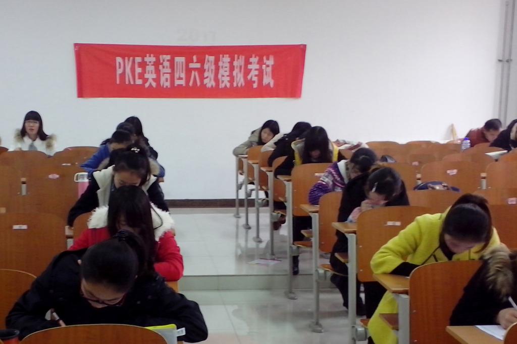 11月22日下午,由PKE英语协会主办的四六级英语模拟考试在S楼教室成功举办。此前有关本次模拟考试的活动展板在北门展出时,便吸引了众多同学前来报名参加。 在四六级英语考试即将到来之际,PKE英语协会贴心为同学们举办了本次模拟考试,以便同学们能够熟悉四六级考试的流程,对考试时间有更好的把握,取得更优异的成绩。 考试当日,考场秩序井然,同学们也按照四六级英语考试的标准流程参与了本次的模拟考试。考试开始前,同学们自觉将与考试无关的物品放好,安静等待发卷。考试过程中,考场内始终保持安静,气氛严肃。同学们都在奋笔疾书,认真答题。考试服务人员也始终坚持岗位,为参与考试的同学们提供服务。 下午5:20本次模拟考试圆满结束。当然,考完后的讲解是必不可少的,本协会特地请一位研究生为考生讲解、评析试题,更好地发挥这次考试的作用。此次活动很好地宣传了PKE英语协会的特色活动,在广大学生中得到了好评。我们相信,这对于同学们更好地应对英语四六级考试会起到极大地促进作用!