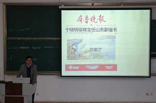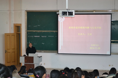 第四届新闻写作培训班第五讲在JE101室举行,齐鲁晚报日照站副站长王封受邀担任主讲。讲座开始之前我院党总支副书记,2014级政治辅导员肖龙航发表讲话,鼓励同学们利用好本次讲座为大家提供的学习契机,学为所用,为将来更好的发展奠定基础。 随后,王封围绕“全媒体时代记者的修炼,合格记者必备的素养”开始本次培训。王封首先介绍了齐鲁晚报的版面及其特色栏目,并以“拒做手机奴”话题为契机,呼吁同学们积极阅读纸质媒体,积极投稿写文章。随后,王封指出全媒体时代改变了人们的生活及阅读习惯,但并未改变新闻报导的本质使命,并就目前传统的纸媒危机提出了自己的见解,他说:报业危机,危中有机,高品质的内容是核心竞争力的灵魂。王封就一个合格记者的必备素养提出了几点具体要求:学习广泛涉猎;保持政治敏感度;大胆提问、重视言论;精益求精。最后,王封与同学们进行热烈的互动,在与同学们的交流中他说自己对于媒体行业,因为喜欢,所以坚持,全媒体时代不能改变新闻的本质与原则。 至上午12:00,麻豆视频av