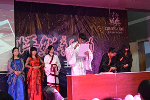 新闻一班以新闻播报的方式表演《光阴的故事》,与李莹老师的现场互动访谈和班歌《精忠报国》的演唱为其增色不少,《新一的诱惑》、《少年中国说》等才艺向大家展示“温故知新,见贤思齐”的学风。学院三位学子带来的电影主题曲《我好想你》、《匆匆那年》、《致青春》赢得观众掌声。接下来,数字媒体班表演节目《鼓动青春》,鼓声和班歌《九神曲》表现其“团结、铸魂、竞先、创新”。舞蹈队表演的《万马奔腾》,将大学生蓬勃向上的精神面貌充分展现。数字出版班表演节目《犹闻泼墨香》,一位古代雕刻工穿越到现代,以特别方式向大家展示了雕刻印刷的发展历程,体现班级学风“学无止境,砺学笃行”。