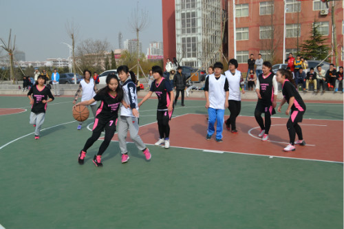 新学期的篮球联赛于近日拉开帷幕。3月22日下午三点,传媒女篮与信工女篮的比赛在西篮球场举行。双方球员提前到场,为接下来的正式比赛做热身准备。