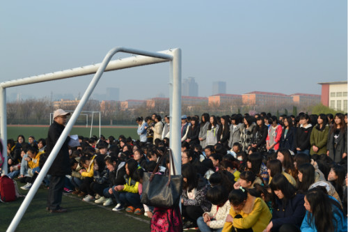 早春的天气还有些寒冷,但并没有阻挡同学们认真排练的热情,同学们早早的来到广场,以饱满的精神状态进行排练:同学们站的整齐划一,骄傲的小脸上绽放出自信的光芒。团总支学生会相关部委认真负责,严格考勤。在初升的骄阳中,同学们排列成一个个整齐的方阵,激情如火,活力四射。