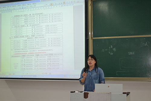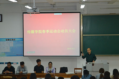 接下来,学生会主席赵明聪对于春季运动会分工作具体的阐述。提到,学生会各部门要各司其职,积极配合学院工作。赵明聪宣读了各项工作的负责人,将任务分配到个人,具体提到了检录、宣传、卫生等方面的工作。