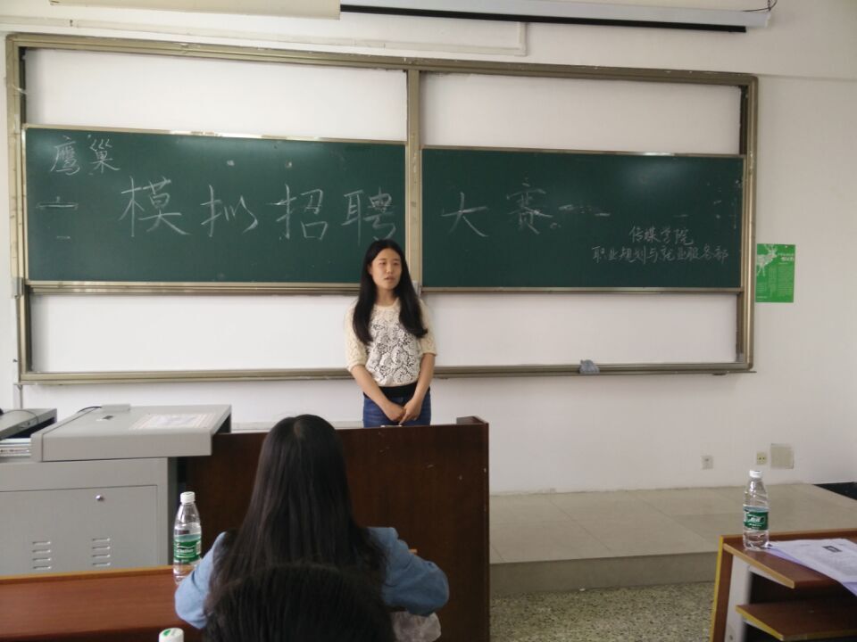 团总支学生会主办,学生会职业规划与就业服务部协办的“赢在曲园”模拟招聘大赛决赛在C101如火如荼的展开,本次比赛面向全校学生,邀请日照鹰巢科技网络科技有限公司技术总监邓江伟,日照梧桐树广告装饰有限公司老板孟宪江及其优秀员工担任嘉宾。