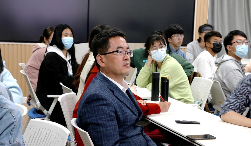 新闻系副主任孙浩主持,学院副院长刘波与新闻学专业部分学生在JC813集体参与学习并展开交流。