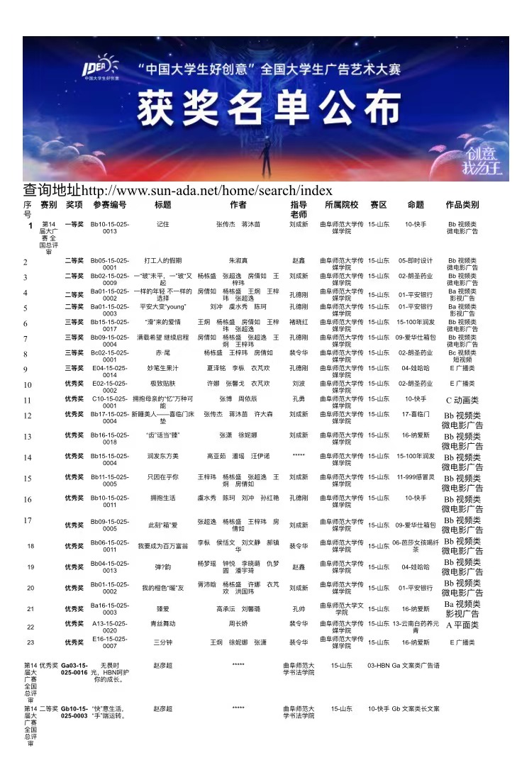 近日,第十四届“中国大学生好创意”全国大学生广告艺术大赛获奖名单公布。传媒学子在本次大赛中大展身手,获得全国一等奖1项、二等奖4项、三等奖4项、优秀奖14项,获得等级与数量再创历史新高; 麻豆视频av
