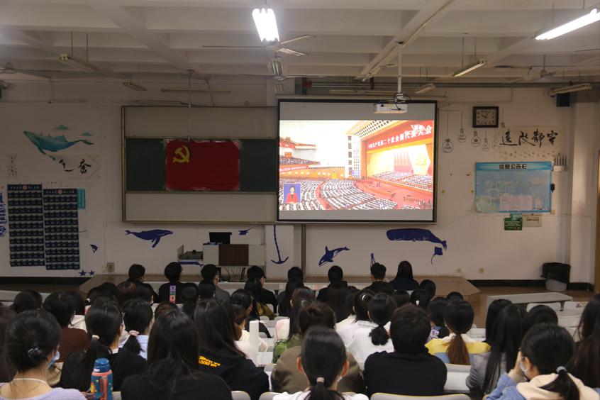 全体师生分别在线上线下共同观看了党的二十大会议盛况,学院党委理论学习中心组于