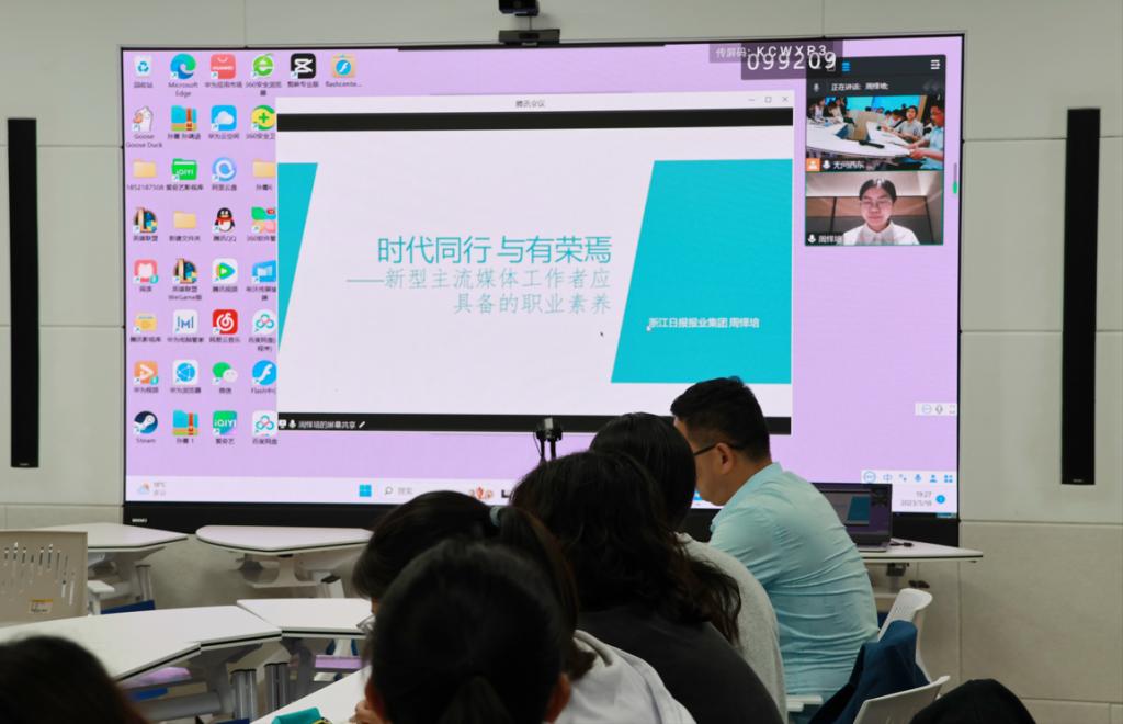 于JC813举办青年学者讲堂第三季第三讲,通过线上连线方式邀请到北京大学文学博士、浙江日报报业集团潮新闻客户端编辑周怿培,开展“与时代同行,与有荣焉——新型主流媒体工作者应具备的职业素养”为主题的讲座。2022级新闻学专业学生参与讲座。讲座由麻豆视频av