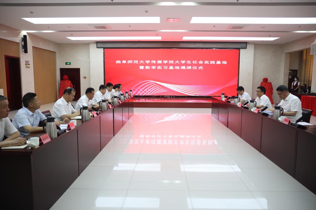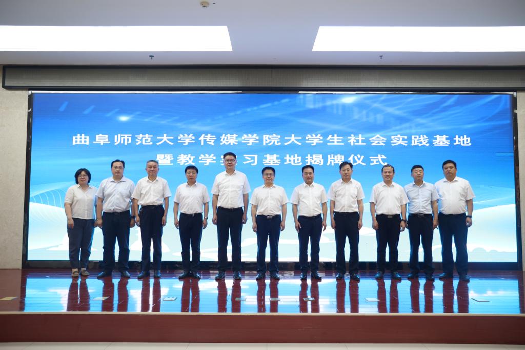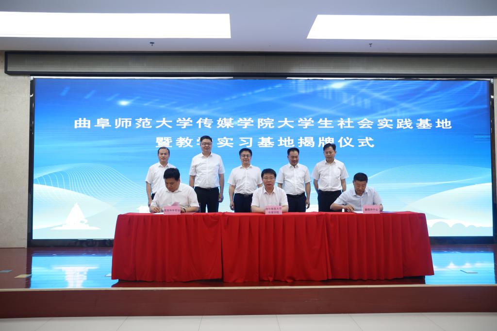 王焕景与济阳区融媒体中心、教育与体育局相关负责人签订共建实践基地协议。胡凡刚和张鹏为教学实习基地揭牌,王宏杰与邓洪刚为大学生社会实践基地揭牌。