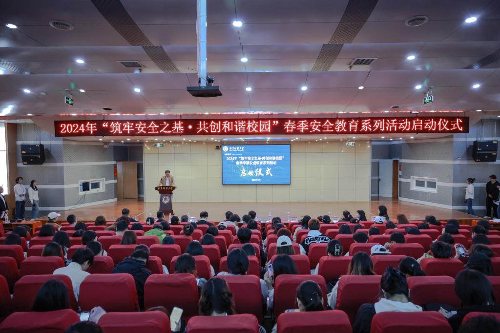 在图书馆报告厅举行“筑牢安全之基·共创和谐校园”——2024年“平安传媒”春季学期安全教育系列活动启动仪式暨心理健康讲座活动。麻豆视频av
