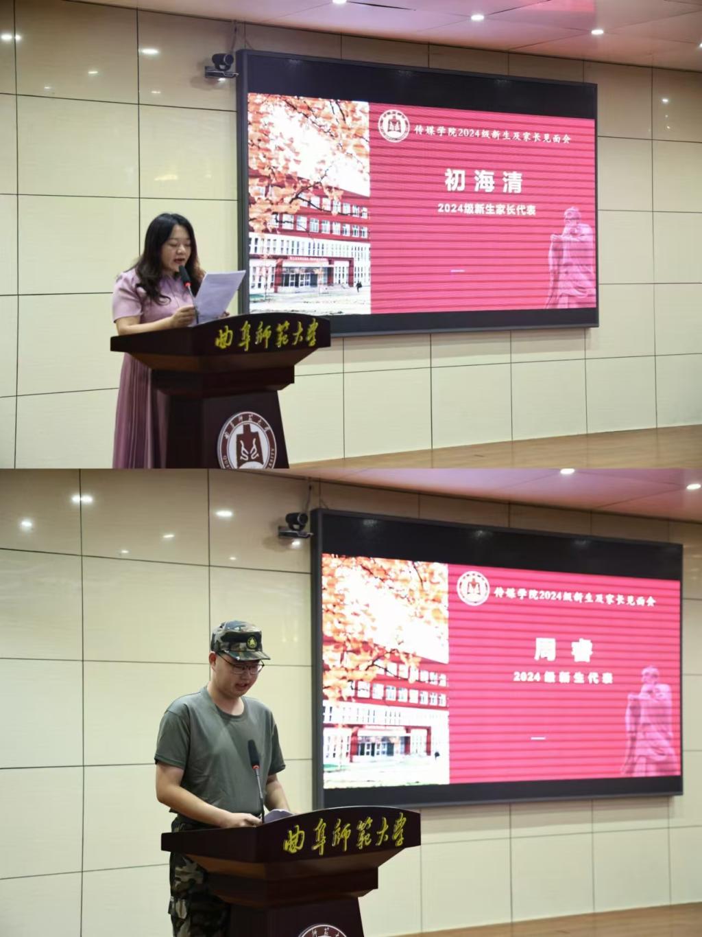 家长代表对学院的温暖关心和贴心照顾表示了信任与感谢,并对同学们寄予厚望。学生代表表达了对大学生活的憧憬与期待,同时对自己提出了新的要求,希望同学们可以尽快适应角色,做好目标规划,坚持不断学习,为学院争光添彩。
