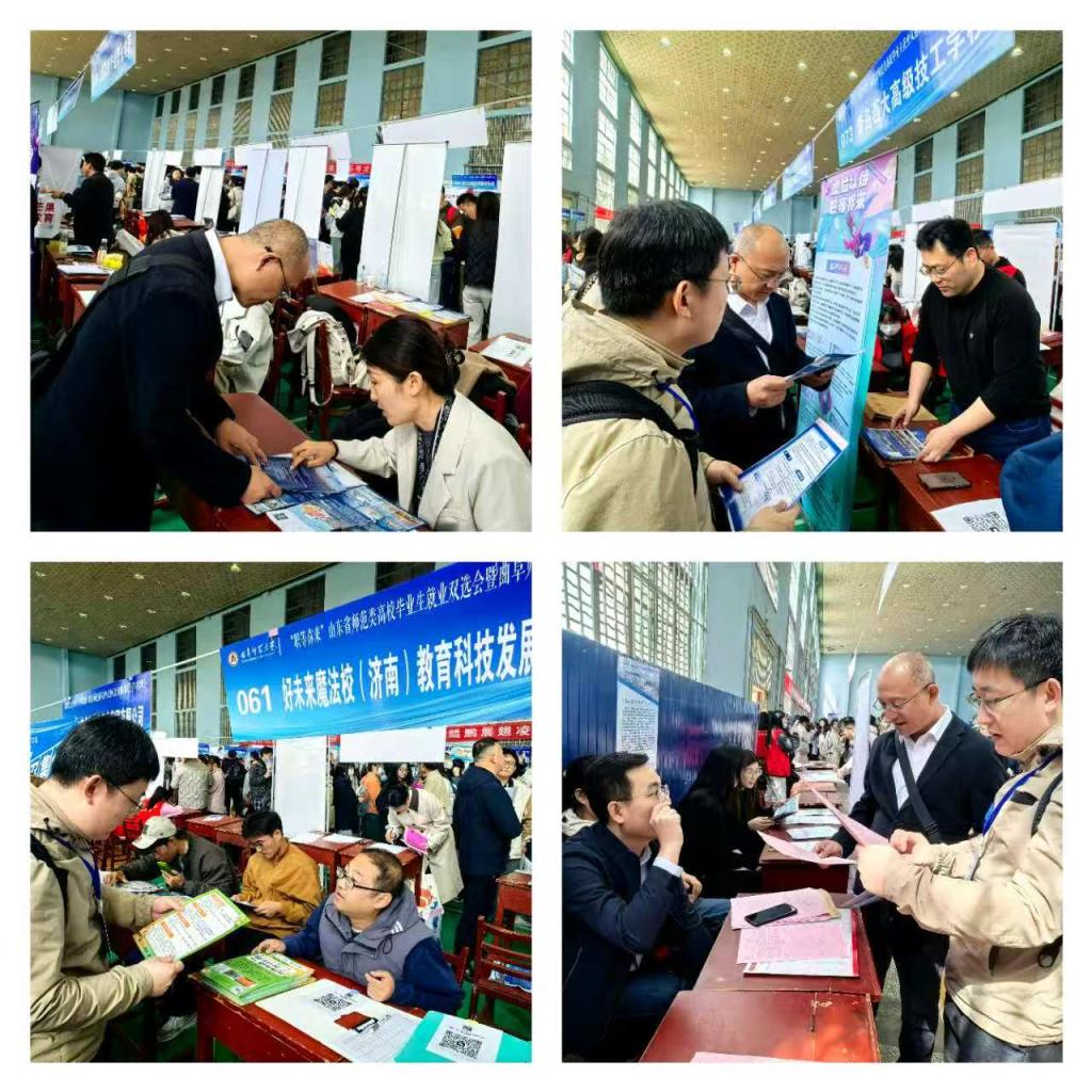 招聘会现场,学院领导教师依次走访了日照职业技术学院、济阳闻韶中学、九思教育科技有限公司、鄄城翔宇高级中学、青岛西大高级技工学校、五莲县教育和体育局、淄博乐悦思艺术培训学校、邹城市北大新世纪实验学校等众多企业,与上述招聘企业围绕人才市场的新需求、人才培养的新方案等核心议题展开了深入探讨和交流,详细了解了企业对人才的具体需求和期望。田荣林积极介绍学院的人才培养理念和特色,并热情推介学院的研究生和本科毕业生,为企业与学生之间搭建起就业的桥梁,全力推动学院就业工作的深入开展。毕业生们积极主动、纷纷投递简历,并在各企业展台前与招聘负责人进行了面对面的深入交流,细致了解了岗位职责、薪资福利、晋升通道等关键信息。现场互动频繁,交流氛围热烈。
