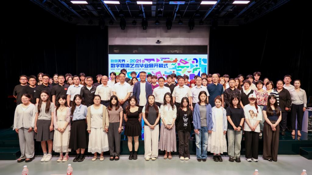 在国际化课程体系构建、融合创新建设、教师队伍培育、人才联合培养等方面取得的成绩和突破,希望学院在课程建设、师资培养、科研创新等方面持续发力,培养更多跨学科复合型、创新型人才。王焕景回顾了专业建设历程,介绍了学院在国际化教学交流、见习写生实践、教学设施完善等方面的举措和成就,表示学院将持之以恒提升教学质量和人才培养水平,助力学生成长成才。赵可云宣读了2021级数字媒体艺术毕业设计展一、二等奖获奖名单,与会领导分别为30余位获奖学生代表颁奖并合影留念。