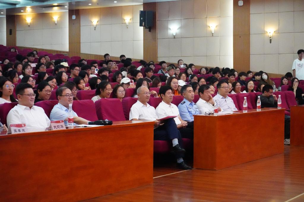 讲座中,陈磊作了题为“筑牢安全法制意识,助力人生逐梦远航”的专题报告。他聚焦消防安全、防范电信诈骗等重点领域,结合真实案例,深入浅出地阐释了相关法律知识和安全防范要点。陈磊特别介绍了“帮信罪”的概念及其危害,提醒同学们增强法律意识,避免因法律认知不足而误入犯罪陷阱,切实提升了大家的法治观念。