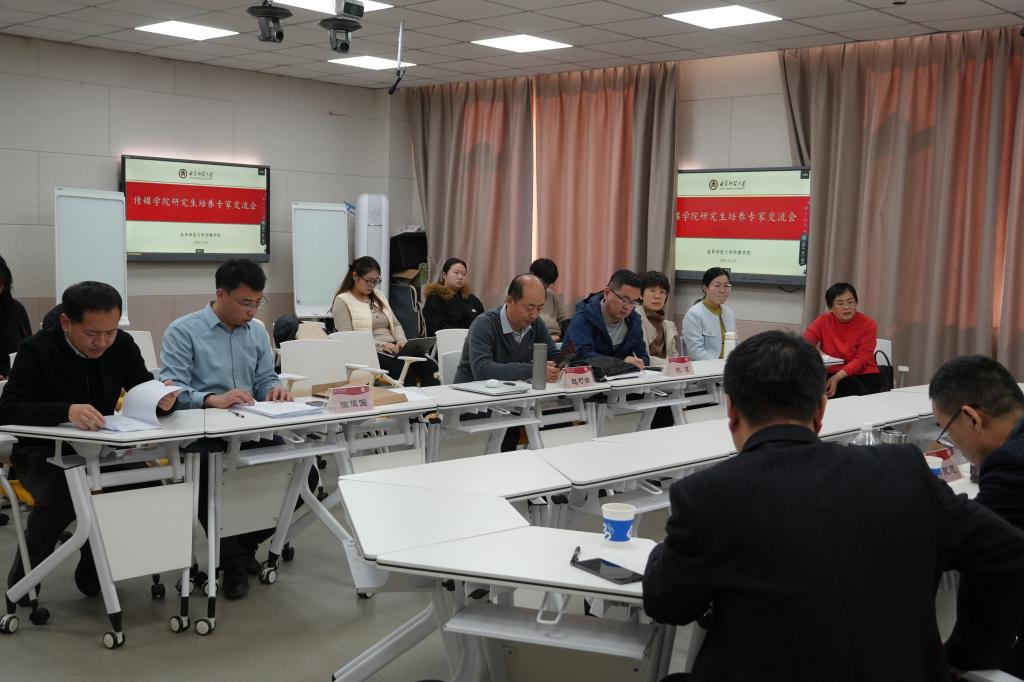 于F楼301举办研究生人才培养专家交流会。山东省社会科学院党委副书记、院长胡钦晓教授,中国教育技术协会信息技术教育专业委员会副主任委员兼秘书长、天津师范大学颜士刚教授,江苏省教育信息化工程技术研究中心常务副主任、江苏师范大学杨现民教授,麻豆视频av
