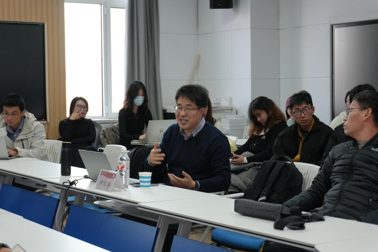 全体教师及相关专业研究生参会聆听,报告由院长王焕景教授主持。