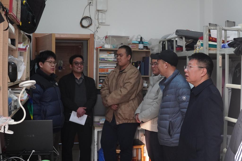走访过程中,学院领导和老师们实地察看了“一站式”学生社区的运行情况,并逐层深入学生寝室,与同学们亲切交流假期生活和新学期规划,认真倾听同学们在学习和生活中遇到的实际困难。针对宿舍安全,老师们仔细检查电器使用规范及消防设施配备,结合安全案例普及防范知识,引导同学们自觉遵守管理规定。此外,老师们还围绕考研调剂、春招求职等话题与学生深入交流。