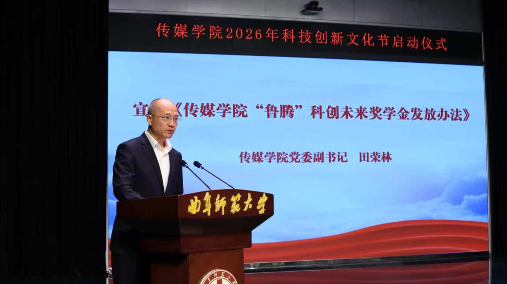 科技创新工作汇报。他详细汇报了学院2025年度学生科技创新成果,分析总结了学院以赛促学、以赛促教、以赛促创,搭建课赛融合的育人体系。他表示,本届科技创新文化节是全新起点,学院将紧扣AIGC、智能媒体发展趋势,开展系列特色科创活动,立足传媒专业打造“传媒+科技”特色创新路径,回归立德树人根本任务。他号召全院师生凝聚科创合力,营造创新氛围,为学校建设高水平应用型大学贡献传媒力量。