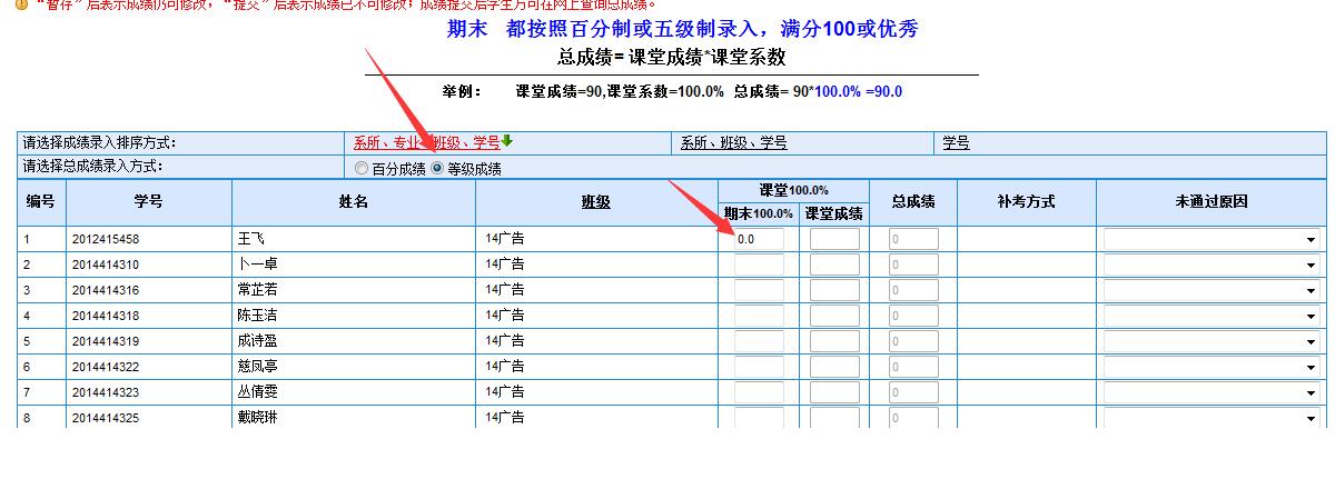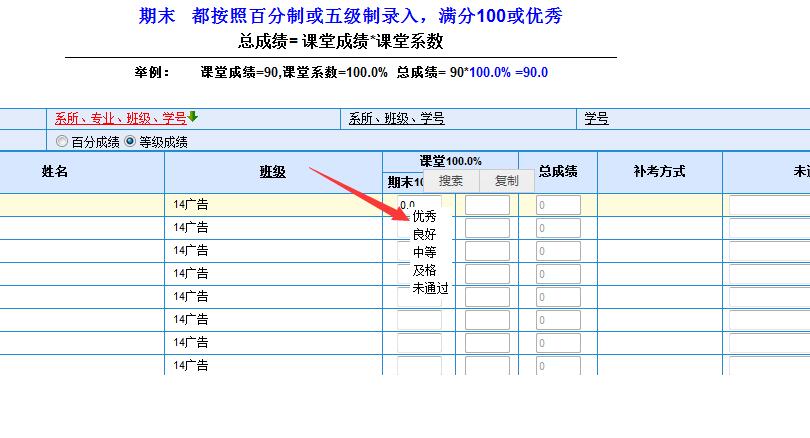 等级成绩的录入注意事项: