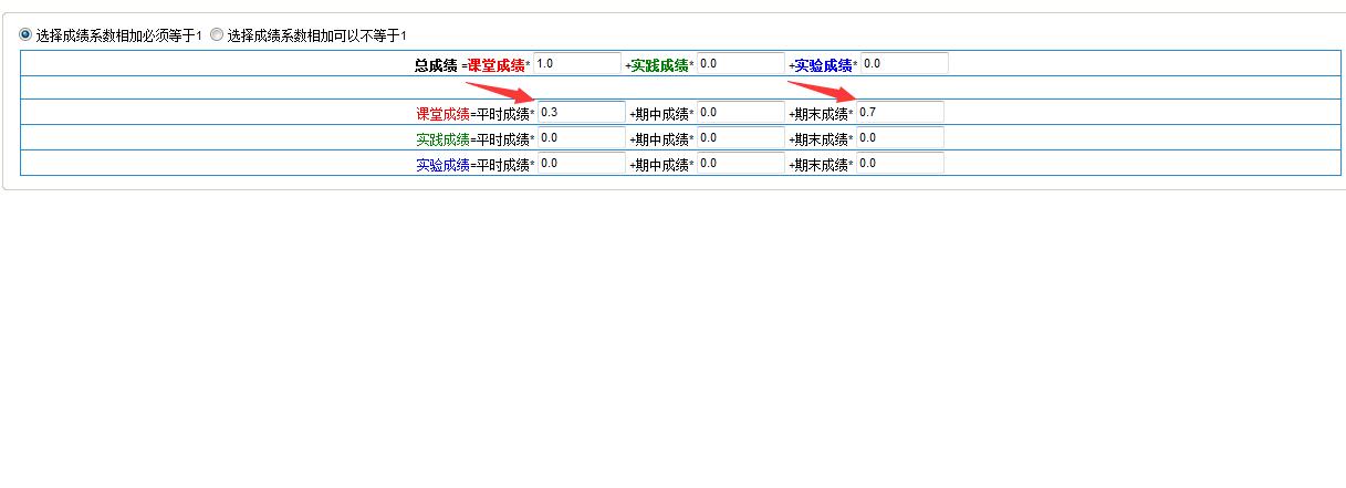 第三种情况,假设课堂成绩占70%,实验成绩占30%,如图设置: