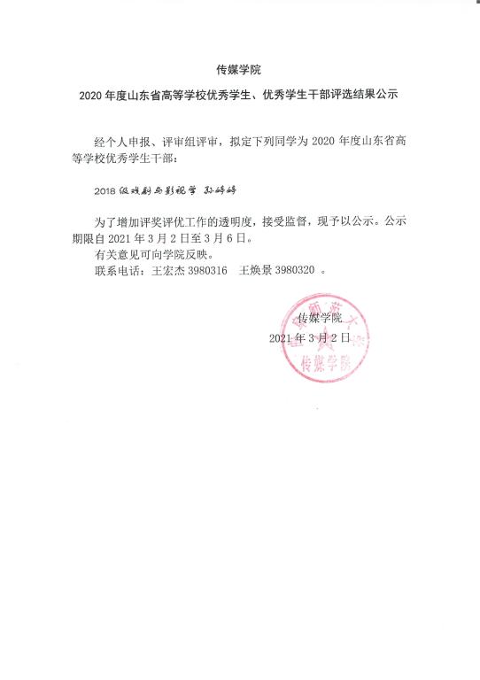 【来源:麻豆视频av 2020年度山东省高等学校优秀学生、优秀学生干部评选结果公示 | 发布日期:2021-03-02 】