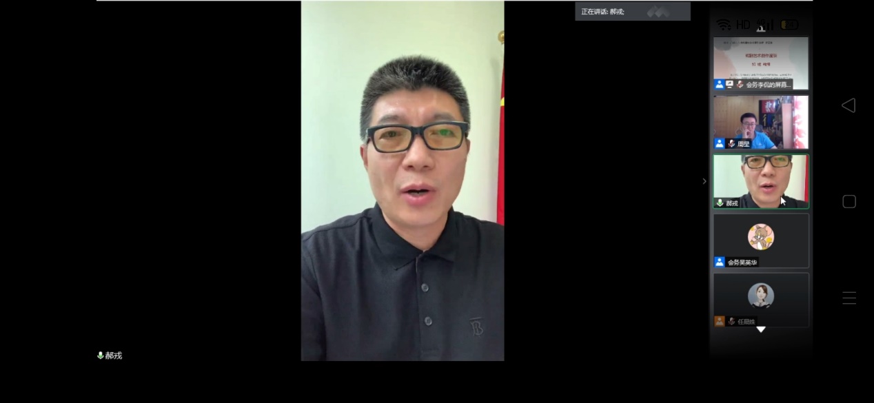 郝戎教授从“生活和艺术的关系”、“技巧和艺术的关系”、“理论和实践的关系”、“形式和内容的关系”、“传承和创新的关系”五个角度分享了他对戏剧艺术创作的理解。首先,郝戎教授用李白、李煜截然不同的作诗风格为例,说明了生活感悟对艺术创作的重要性,随后对生活进一步解读:有人才有生活,戏剧艺术一定是对人的反映。其次,郝戎教授肯定了技巧的关键性作用,但同时也强调技巧是科学的,科学具有普遍性,艺术具有特殊性,丢掉了特殊性,艺术就死了。再者,郝戎教授强调要用实践体验反哺理论教学,提出了“跨界是科学的,但要重视基础理论”的观点,表示理论的建设要从基础理论、本体理论出发。然后,郝戎教授以《俄国形式主义文学》中“任何形式上的变化都是新内容的开发”的观点为例,点明了自己对于形式和内容二者的态度——形式与内容相辅相成,所谓内容大于形式是对二者的割裂。最后,郝戎教授就话剧方向的创新与传承的关系进行剖析,他认为创新依托于熟、依托于杂,提出“传承和创新的关系实质上是量变和质变的关系”的观点。在讲座的最后,郝戎教授就“戏剧艺术的消亡”、“新文科改革”等相关问题作出回应,他表示:“无论什么时候,戏剧艺术都不会消亡,戏剧的魅力所在就是他的现场性。另外,新文科的教育改革是一个趋势和方向、是不可逆且不以你的意志为转移的。”