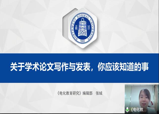 在C813、C820会议室召开主题为“关于学术论文写作与发表——你应该知道的事”的学术报告。此次报告邀请到了《电化教育研究》编辑部主任张绒担任主讲人,报告会在腾讯会议进行。麻豆视频av